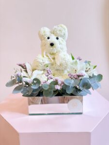 Box M 15x18cm com rosas, rosas limonium e Eucalipto