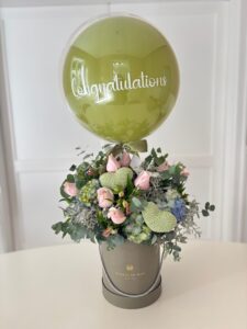 Celebre momentos especiais com elegância e delicadeza. O Box Congratulations com medidas 20×23 traz uma combinação charmosa de flores frescas