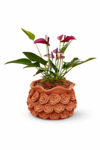 Vaso Rosas com Antúrio Uma composição que une arte e natureza em perfeita harmonia. O Vaso Rosas com Antúrio traz