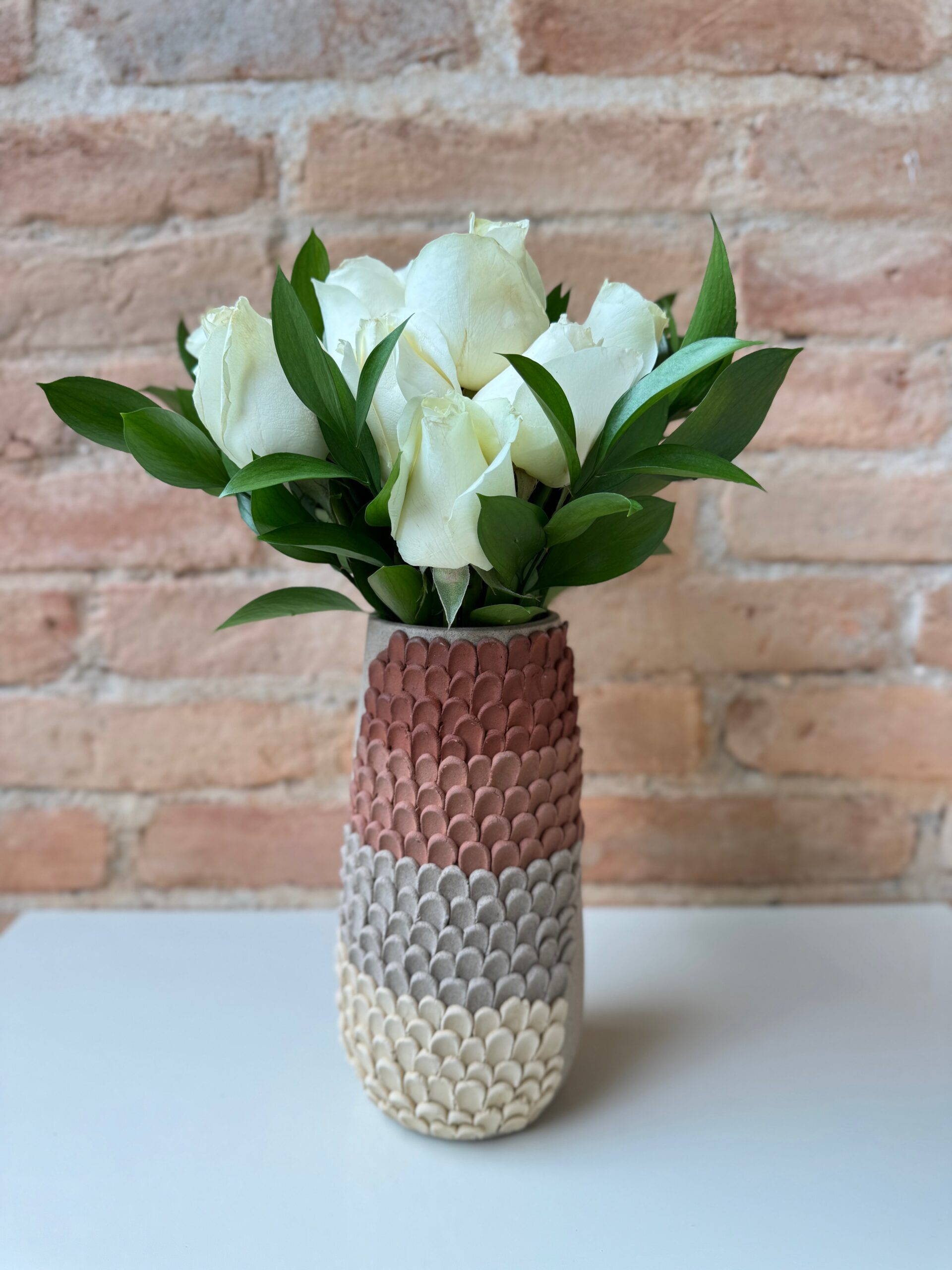 Inspirado nos tons suaves do amanhecer, o Vaso Aurora combina texturas em e cores terrosas que se fundem com delicadeza. Uma peça artesanal que traz harmonia e frescor à decoração, perfeita para realçar arranjos naturais com elegância e leveza.